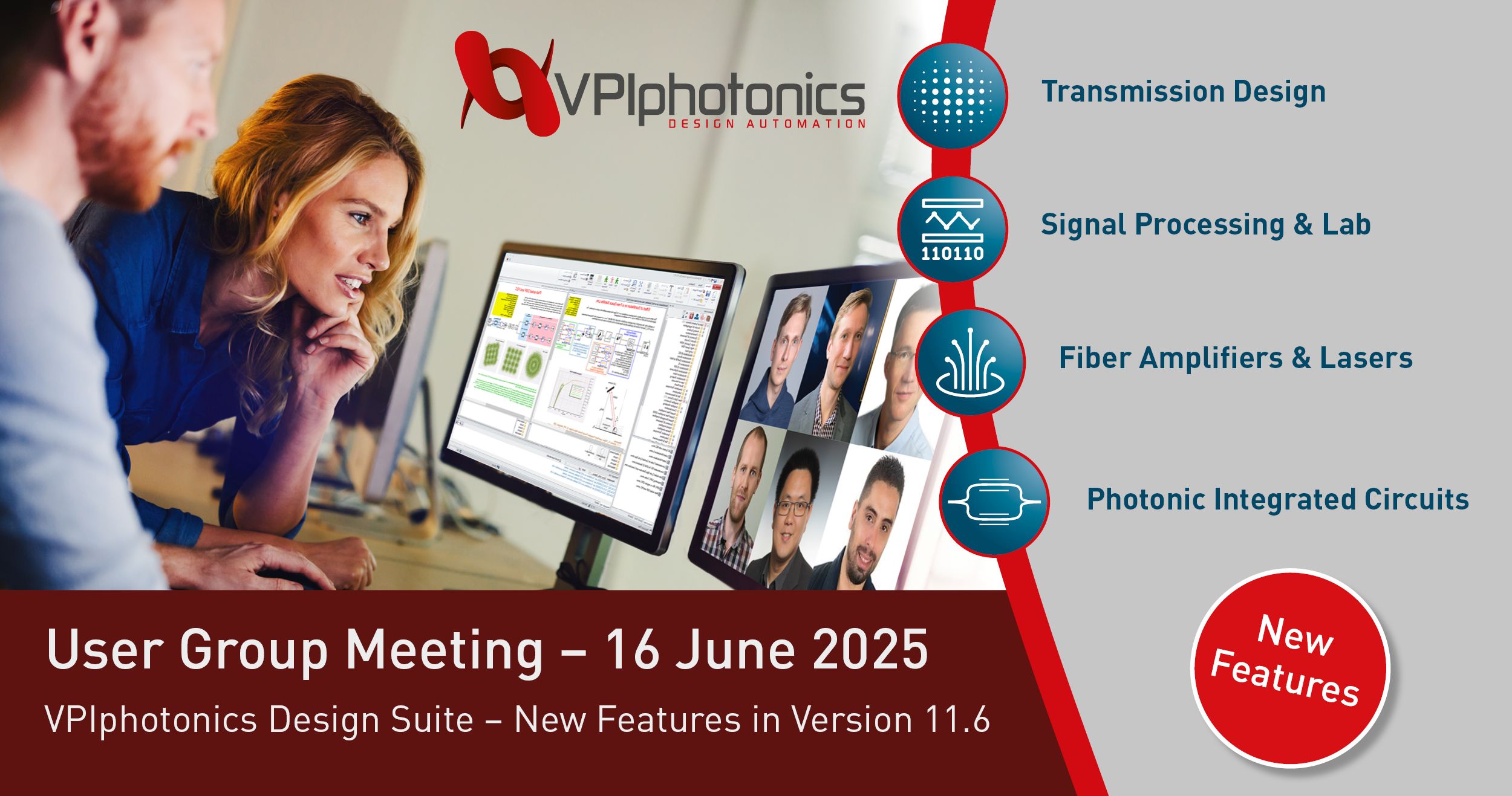 On 16th June, we will host Online VPIphotonics Users Group Meeting. Please join us to learn what's new in VPIphotonics Design Suite™ - Version 11.6, and to have an opportunity to ask our leading application engineers your questions.