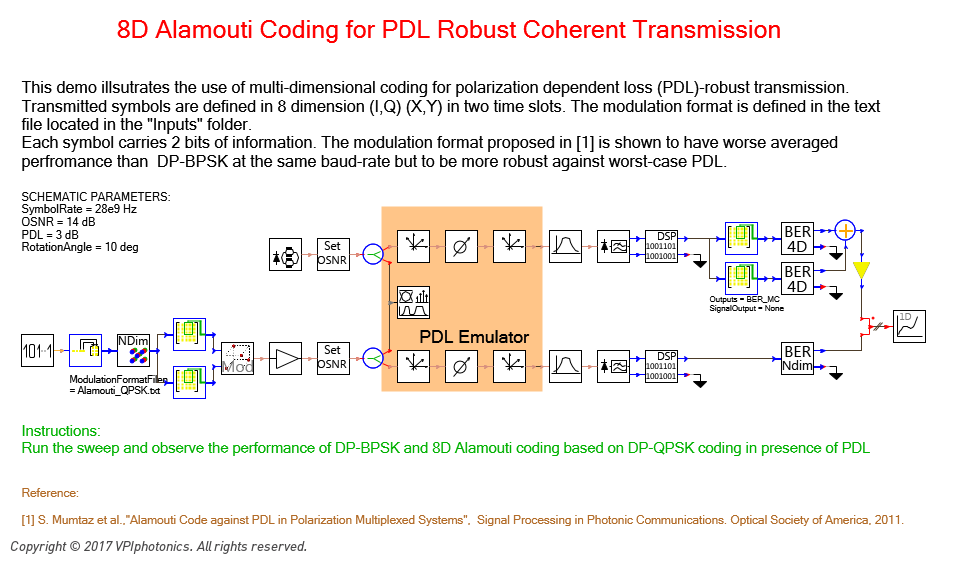 The demo illsutrates the use of multi-dimensional coding for polarization dependent loss (PDL)-robust transmission.